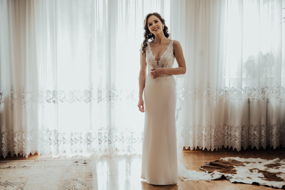 Większość sukienek można dopasować do wymiarów panny młodej w przedziale do 4 rozmiarów bez wpływu na formę i wygląd kreacji. Są jednak takie, którym szkodzi zmiana o jeden numer. Trzeba realnie ocenić możliwości “transformacji” ciała klientki i wybrać model, który najlepiej zniesie ewentualne zmiany. Na szczęście ostateczne poprawki odbywają się zazwyczaj na krótko przed ślubem, a możliwości krawcowych są zaskakująco duże.