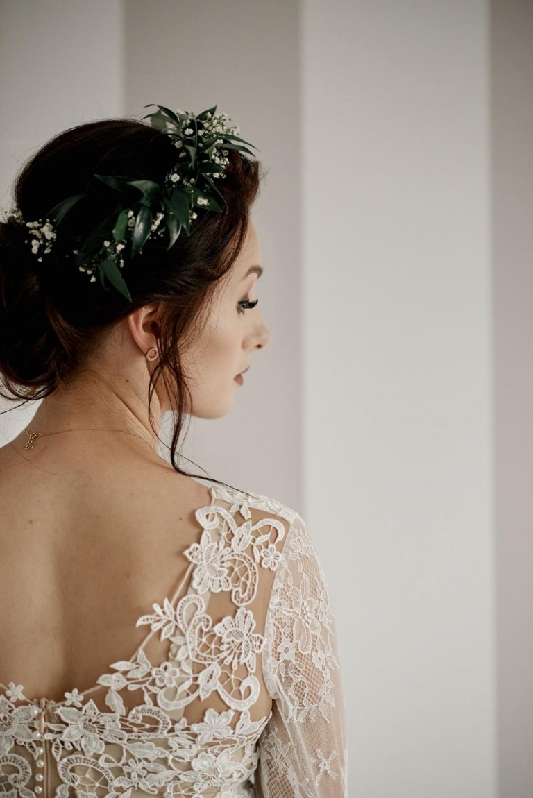 Prócz wianków, kwiatów i wymyślnych fryzur, głowę panny młodej można udekorować stroikiem na spince czy grzebieniu. Detal ten doskonale sprawdza się tak w upięciach i kokach, jak i włosach rozpuszczonych, czy delikatnie zebranych z boku.