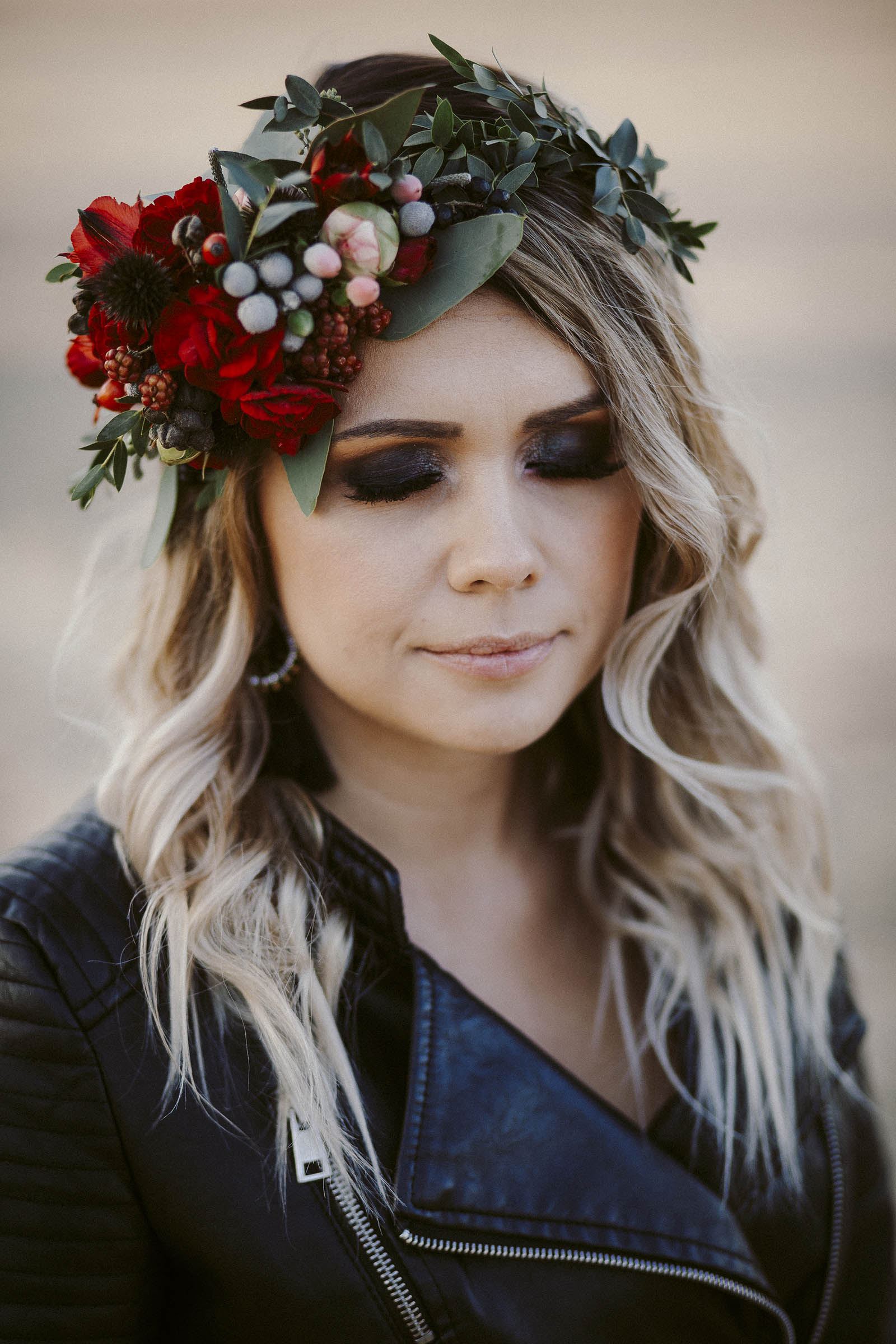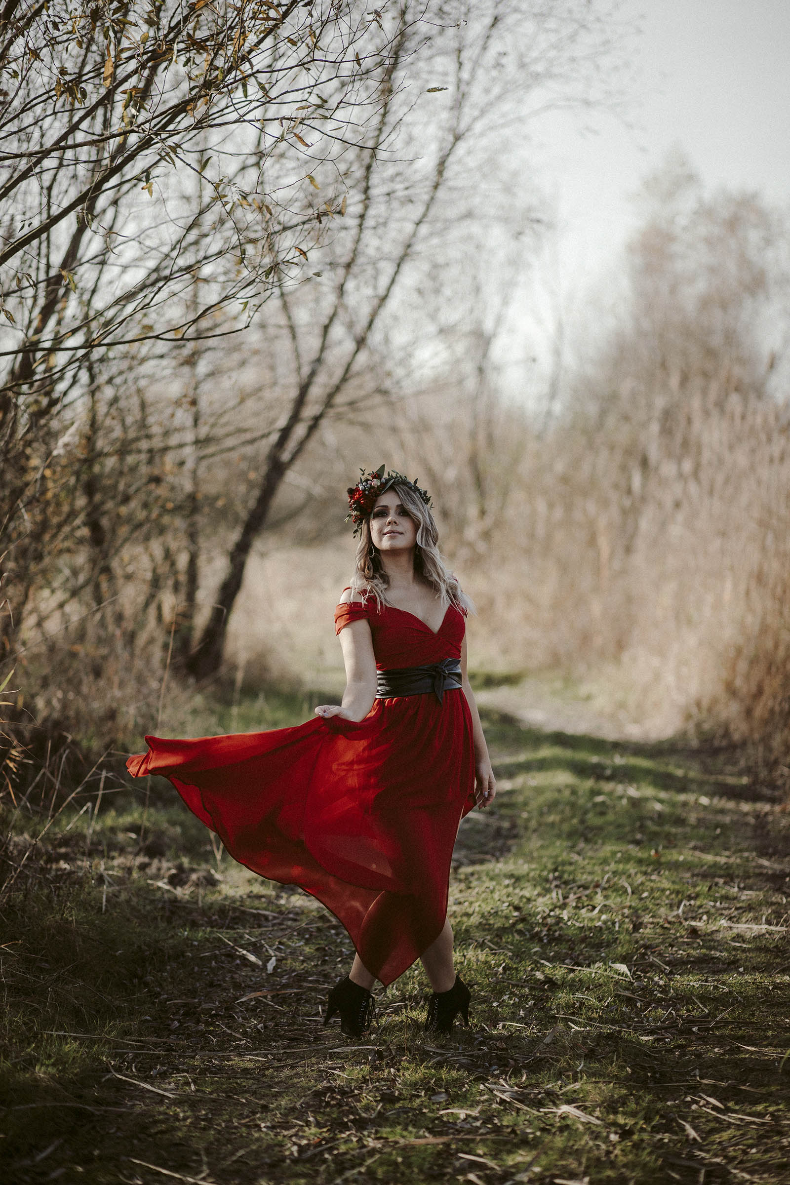 "Ślubną sesję jesienną lub zimową chciałam już od dawna sfotografować. Marzyłam też by to właśnie czerwona suknia wystąpiła w roli ślubnej. Główni bohaterowie czyli Sabina i Tadzio, przecudowna para, doskonale wpisała się w całą koncepcję sesji ślubnej z odrobiną boho i rock’n’rolla.