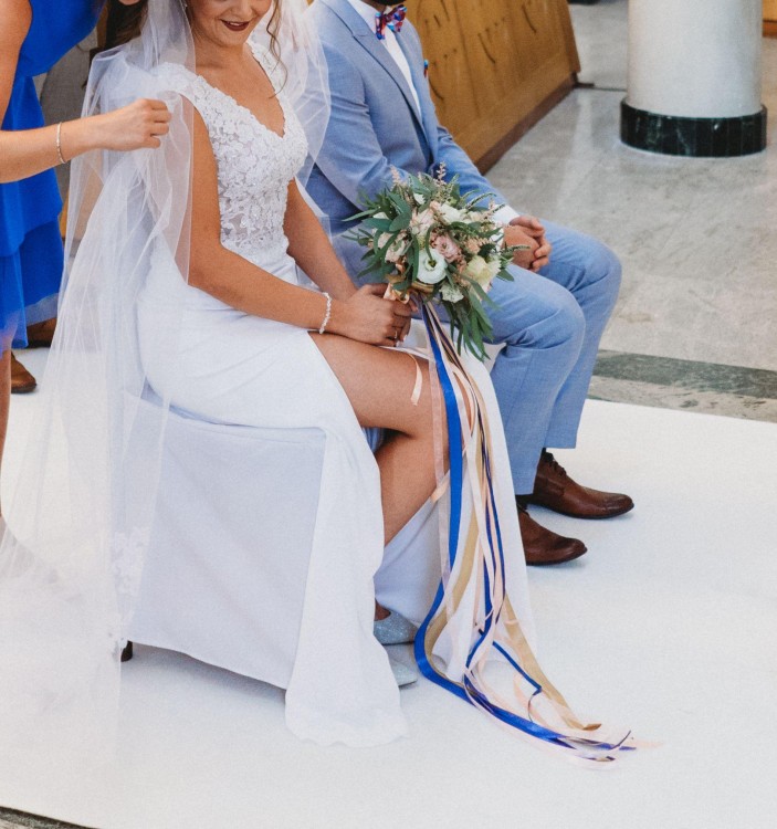Suknia wyprana, nie ma plam ani uszkodzeń. Stan bardzo dobry. Kupiona w salonie w lipcu 2018. Założona na ślub i 2 sesje.