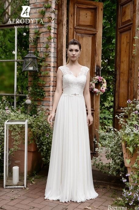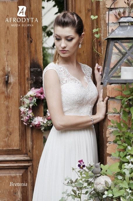 Piękna, biała, romantyczna suknia ślubna, firmy Afrodyta, model BRETANIA z kolekcji 2018