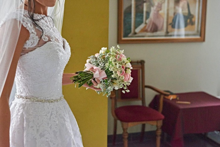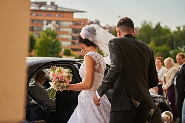 Suknia posiada tren który jest bardzo estetycznie podpinany.