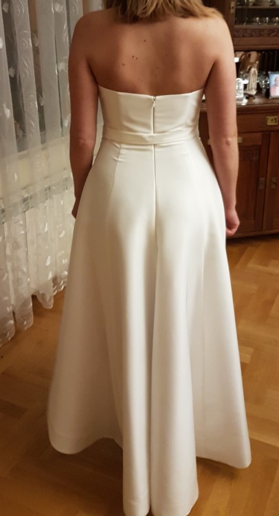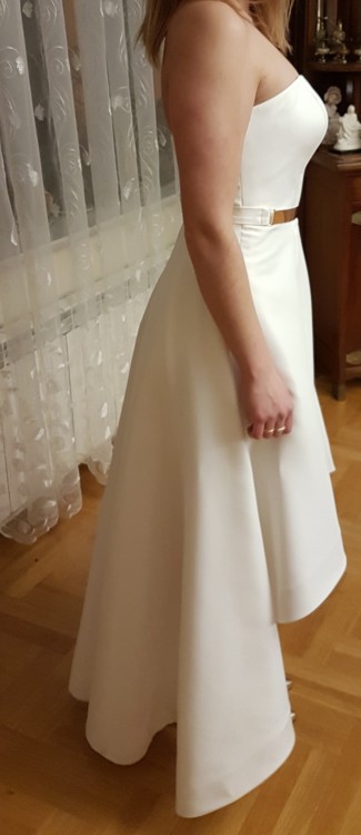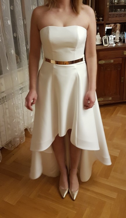 Sprzedam suknię marki Mia Lavi kupioną w krakowskim butiku Madonna Exclusive, model 1539. Suknia jest idealna dla osób ceniących minimalizm, elegancję i wysoką jakość. Sukienka jest asymetryczna, dzięki czemu pięknie się układa i tworzy wyjątkową stylizację. Posiada również kieszenie z boku, nadając sukience lekkiej nonszalancji. Do sukienki dołączam złoty pasek, który podkreśli talię i doda elegancji oraz szyku. Posiadam całą dokumentację z zakupu, chętnie udzielę dodatkowych informacji. Gorąco polecam i zapraszam! :)