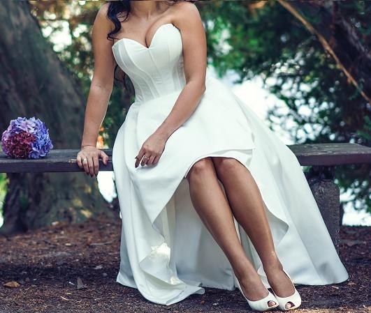 Asymetryczna Suknia Ślubna Ecru