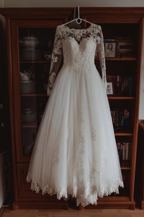 Przepiękna suknia ślubna marki Calista. Rozkloszowana suknia jest wykończona piękną koronką oraz dłuższym trenem. Suknia posiada także długie koronowe rękawy oraz niezwykle subtelny dekolt. Po więcej informacji zapraszam do kontaktu.