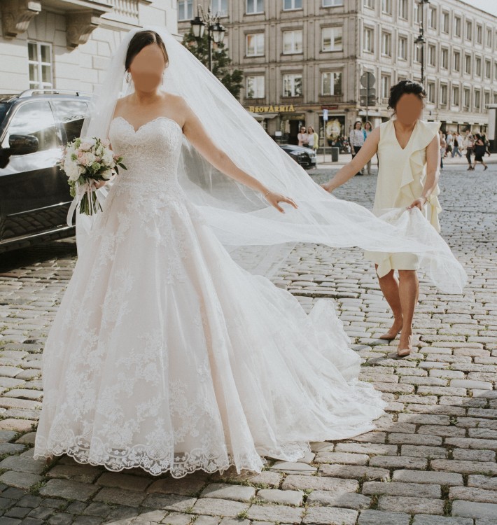 Przedmiotem aukcji jest używana suknia ślubna Allure Bridals 9353.Suknia w literę a z w koronki delikatnie połyskującej. Gorset w serduszko. Suknia z trenem. Kolor Ivory. Rozmiar 38. Kupiona w salonie Abiu w Warszawie. Zapraszam do zadawania pytań oraz obejrzenia i przymierzenia sukni w Warszawie.