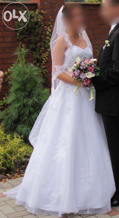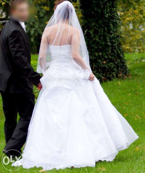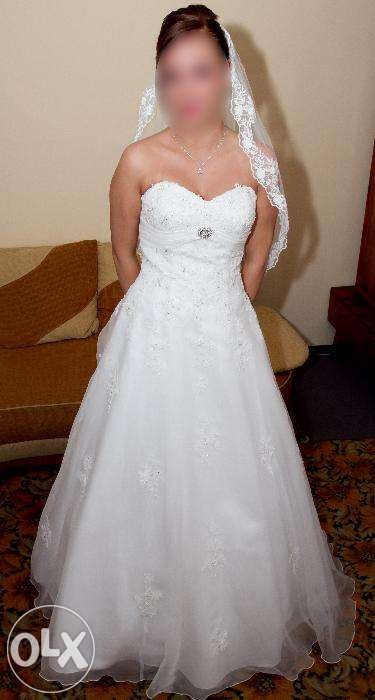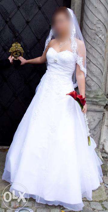 Suknia użyta tylko raz. Po ślubie została poddana czyszczeniu.