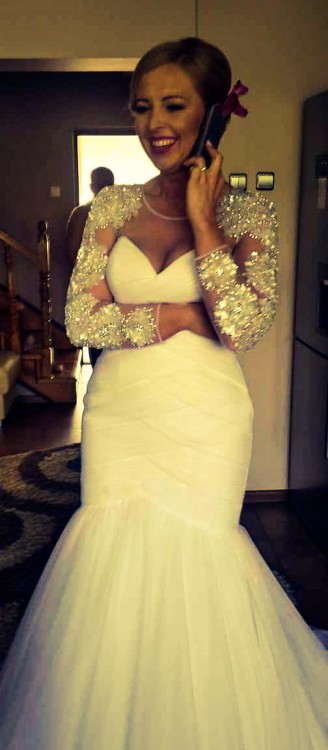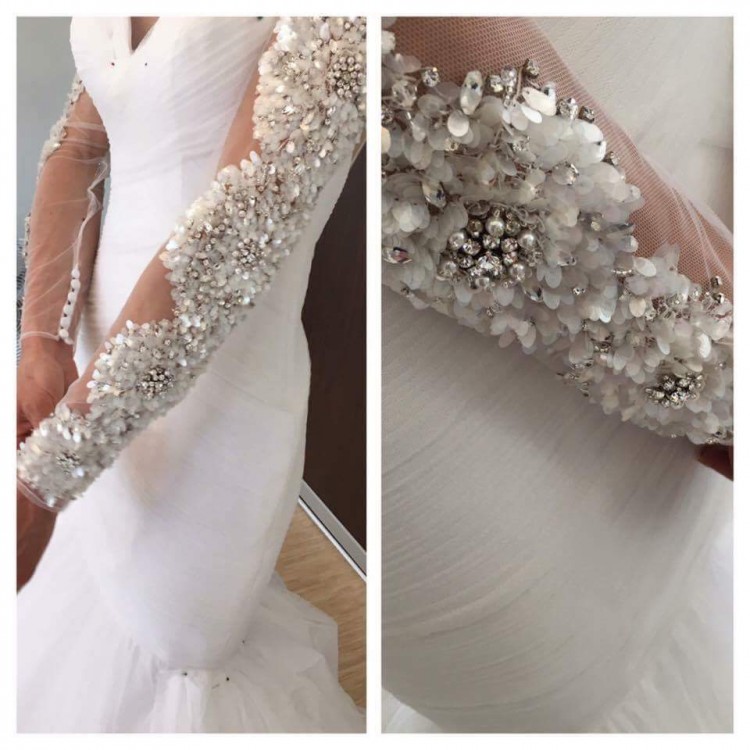 To co jest najbardziej charakterystyczne dla tego modelu, co czyni ją zupełnie inną i wyjątkową to rękawy: ręcznie szyte wykonane z tysięcy cekinów tworzących kwiatowe motywy. Ich przygotowanie przez jedną osobę trwa niemal 2 tygodnie, ale praca ta daje oszałamiający efekt.