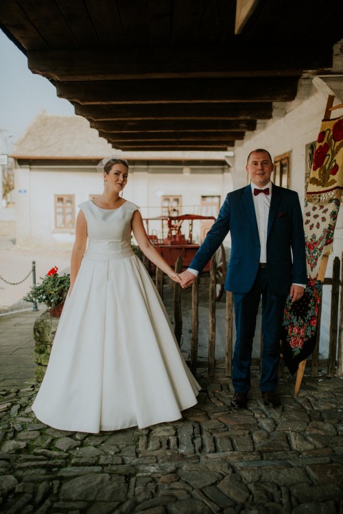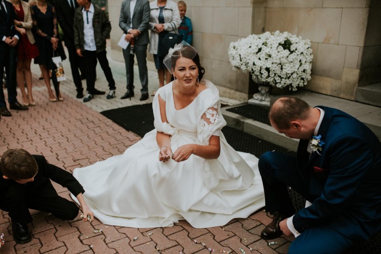 Suknia Odette została zakupiona w salonie sukien w Bochni. Jej cena rynkowa to 2700 złotych. Została założona dwa razy: na ślub i sesję. Jej klasyczny krój, brylanciki w talii i piękny odcień jedwabiu Mikado zachwyci najbardziej wymagającą pannę młodą. Dodatkowym atutem są modne kieszenie, które świetnie sprawdzają się podczas sesji :) Suknia pod zapięciem ma sznurowane wiązanie, które wspaniale dopasowuje ją do sylwetki. Odette została uszyta na wzrost 180 cm i około 5 cm obcasy. Wymarzona dla kobiet, które chcą w ten magiczny dzień poczuć się wyjątkowo.