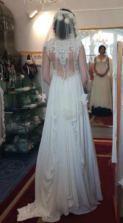 Suknia została wyczyszczona i odświeżona w profesjonalnej pralni chemicznej i jest w bardzo dobrym stanie - czeka na nową właścicielkę :)