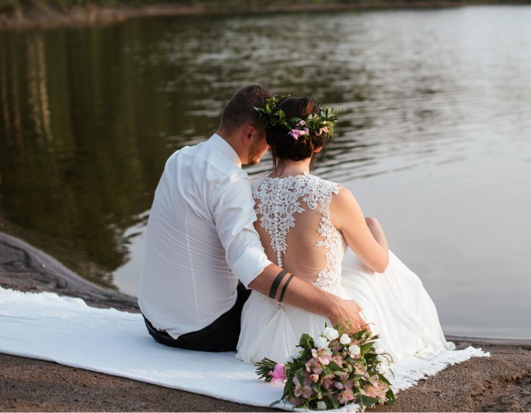 Do sukni dorzucam welon na grzebieniu z koronkowym wykończeniem.