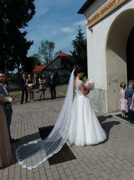 Z bólem serca sprzedam piękną suknię zakupioną w salonie sukien ślubnych, założona 2 razy na ślub i sesję plenerową. bardzo wygodna, sznurowana z tyłu, dzięki czemu dopasowuje się do sylwetki.Zrobiła ogromne wrażenie na gościach. Zainteresowanym wyślę krótki film jak się prezentuje