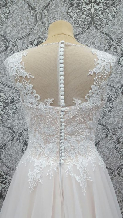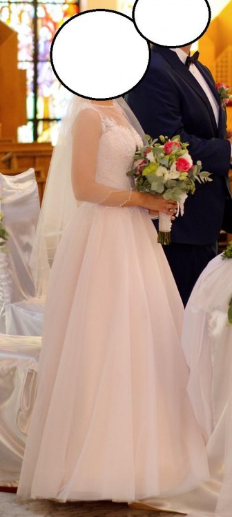 Mam do sprzedania moją wymarzoną suknię ślubną zakupioną w 2017 r. Suknia typu delikatnej księżniczki jest w kolorze szampańskim pokryta białą koronką i tiulem. Suknia posiada suwak zamaskowany guziczkami oraz koło (nie trzeba go używać). Suknia założona dwa razy, na ślub oraz sesję, została wyprana w profesjonalnej pralni. Rozmiar sukni 34/36 szyta na wzrost 167 + 6 cm obcas. Do sukni dorzucam krótki dwuwarstwowy welon zakończony pasującymi do sukni kryształkami. Możliwość przymiarki w Tarnowie lub Krakowie. Cena do lekkiej negocjacji.