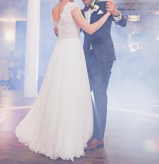 Mam do sprzedania piękną suknię ślubną THEA NUDE uszytą w salonie Anna Kara w Warszawie. Rozmiar 34, uszyta na wzrost 167 cm plus obcas 5 cm, z delikatnym wycięciem na plecach.