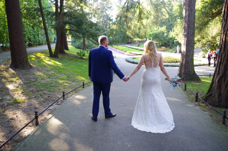 Suknia na ślubie leżała idealnie, na sesji już mniej. Między ślubem a sesją zdjęciową przytyłam kilka kg, co widać na zdjęciach. Suknia idealnie będzie pasować na panny młode w rozmiarze M/L.