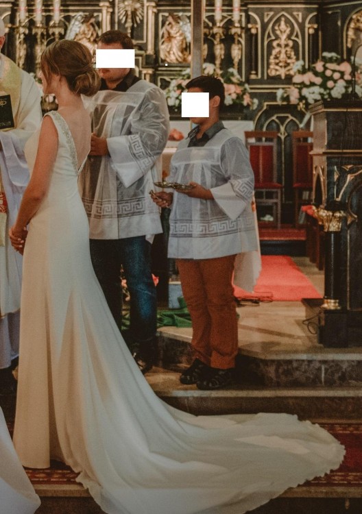 Długość całkowita: 235 cm (150 cm przód + 85 cm tren)