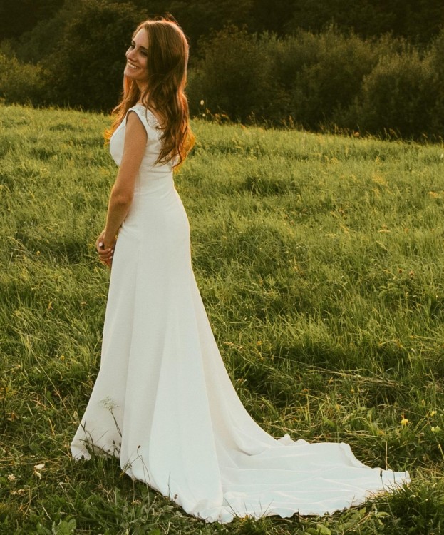 Suknia bardzo elegancka a zarazem wygodna, lekka. Stan bardzo dobry.