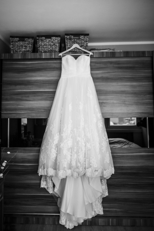 Suknię miałam podczas ceremonii ślubnej i wesela, ale tylko do oczepin oraz na sesji plenerowej.