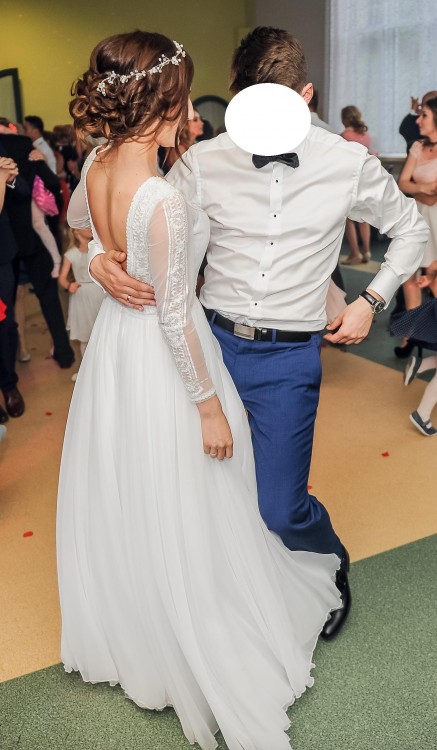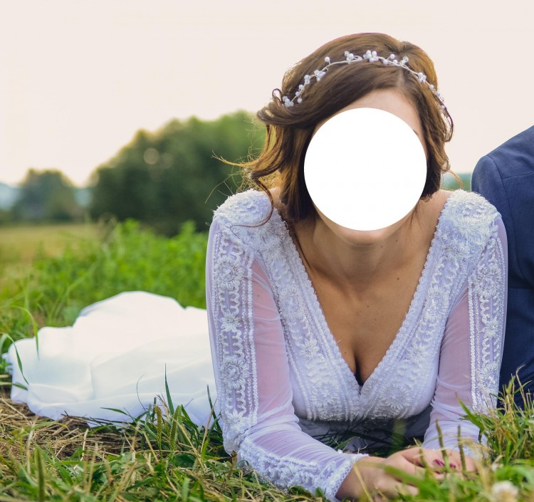 Suknia przepięknie się układa i jest bardzo wygodna. Dzięki naszytym koralikom już sama w sobie jest biżuterią. Polecam ją każdej przyszłej Pani Młodej:):)