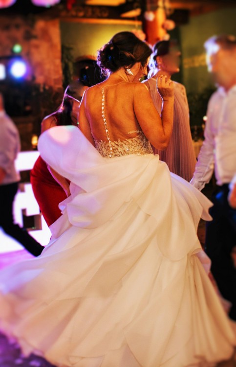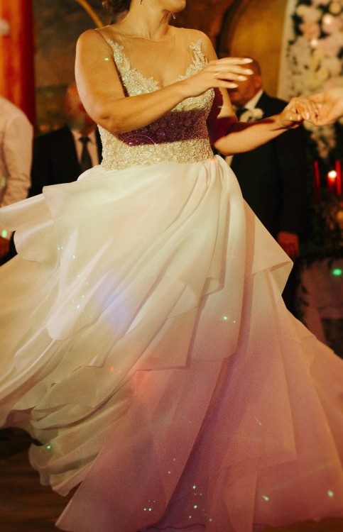 Suknia bez halki, bez koła, bez trenu, przez co jest bardzo lekka i wygodna, robi wrażenie. Ma wszyte miseczki pushup, więc nie trzeba mieć do niej dodatkowej bielizny.