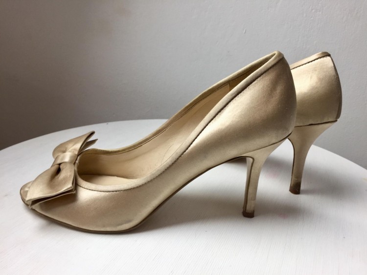 W zestawie oddaje buty, rozmiar 38,5, kolor: Nude, satyna, Nine West. Wysokość obcasa: 8,5 cm, założone raz w dniu ślubu.