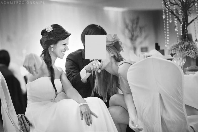 Suknia ma możliwość zawiązania w pasie kokardę ze sztywnego, przezroczystego materiału. Z tego samego materiału jest woal na ramiona, uszyty przez projektantkę.