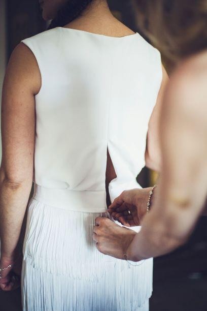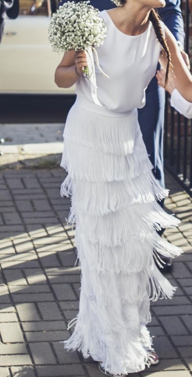 Dół sukni zrobiony jest z frędzli, dzięki czemu suknia jest niepowtarzalna.