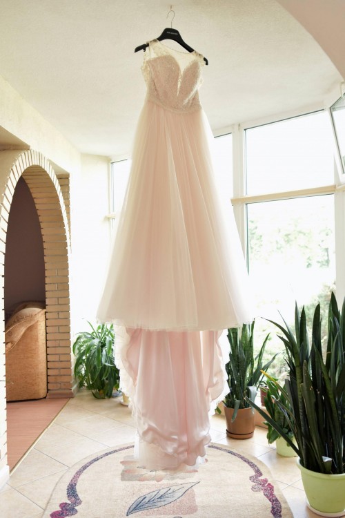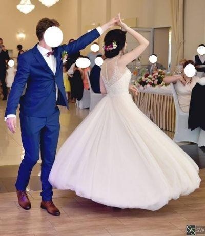 Mam do sprzedania stylową suknię ślubną amerykańskiego projektanta, Justin Alexander model 8886, szyta na miarę w USA. Suknia jest w kolorze SAND/NUDE, rozmiar USA 6 (36), wzrost 165 + 9 cm obcas. Góra sukni zdobiona ręcznie kryształkami Swarovskiego, które przepięknie mienią się w słońcu i światłach sali. Dół sukni wykonany jest ze zwiewnego, miękkiego tiulu, który wyjątkowo układa się w tańcu. Dodatkowym atutem sukni jest piękny długi tren, podpinany pod spód na zatrzaski dzięki czemu nie widać go w tańcu i suknia staje się równa.