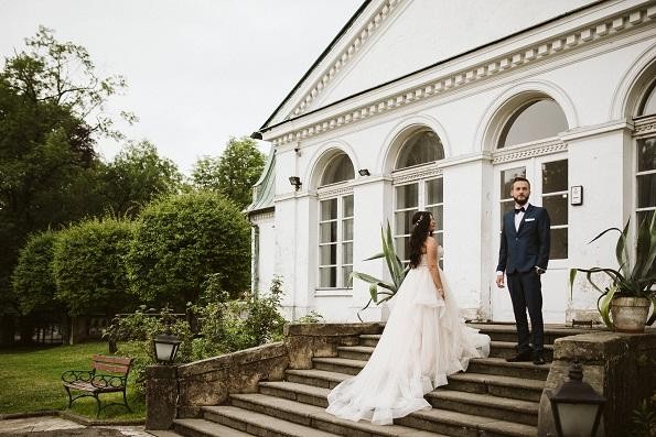 Suknia byłą założona w dzień uroczystości ślubu oraz na sesję .