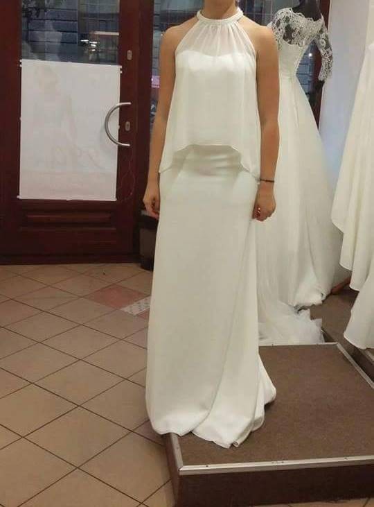 Sprzedam suknie ślubną z salonu Elizabeth Passion. Kolekcja 2017 model E-3495T w kolorze ivory/śmietanka, materiał muślin + żorżeta. Stan idealny, bez zabrudzeń i zniszczeń.