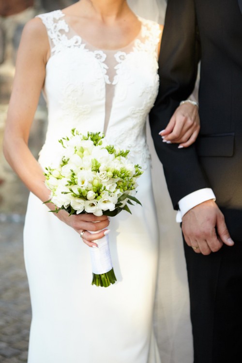 Suknia jest bardzo lekka, zwiewna i wygodna, piękny efekt podczas obrotów w tańcu, na gościach zrobiła ogromne wrażenie.Wykonana jest z najwyższej jakości muślinu i koronki.