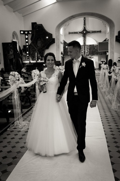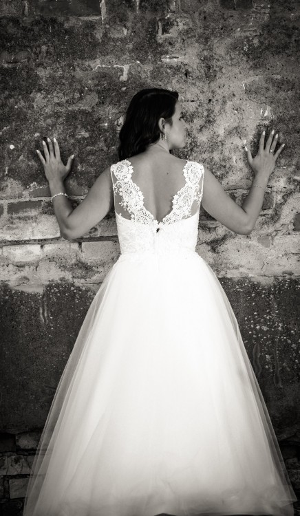 Suknia była założona w dniu ślubu i na sesję plenerową. Ma niewielkie uszkodzenie w tiulu na dole, ale nie jest to w ogóle widoczne. Została profesjonalnie wyprana w pralni i jest gotowa do założenia.