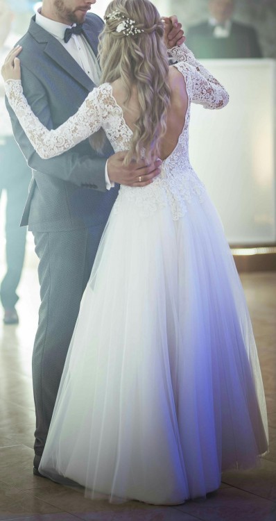 Niestety nadszedł ten czas, żeby rozstać się ze swoją wymarzoną suknią ślubną. Suknia została wykonana na indywidualny projekt, na czerwiec 2019 roku. Muszę przyznać, że jak na suknię ślubną jest bardzo wygodna. Nie krępuje ruchów, dzięki temu można się świetnie wybawić. Ze względu na proste wykończenie dołu, bez problemu nadaje się do skrócenia. Zachwyca delikatnością koronki i dodaje kobiecości przez wycięcie na plecach.