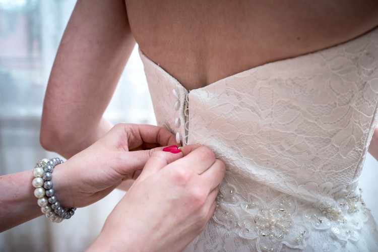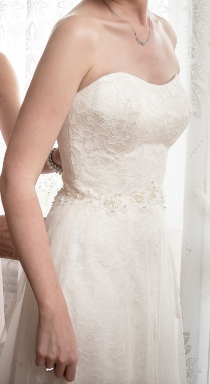Dół sukni składa się z 3 warstw: satyna, koronka oraz tiul
