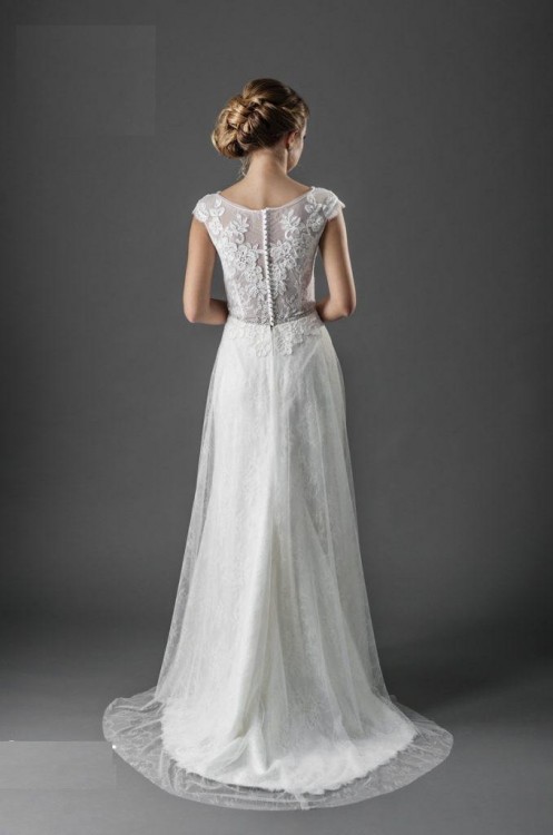 Mam do sprzedania prześliczną suknię ślubną w stylu vintage. Sukienka jest z obecnie modnej koronki, w kolorze kości słoniowej. Delikatna i bardzo lekka. Przepięknie się układa, podkreślając wszystkie walory kobiecego ciała. Sukienka w pasie ozdobiona małymi kryształkami. Elegancji dodaje długi tren, który można podpiąć na czas trwania przyjęcia weselnego . Sukienka szyta na wzrost 168 + ok 9cm obcas, rozmiar 36, w biuście C/D.