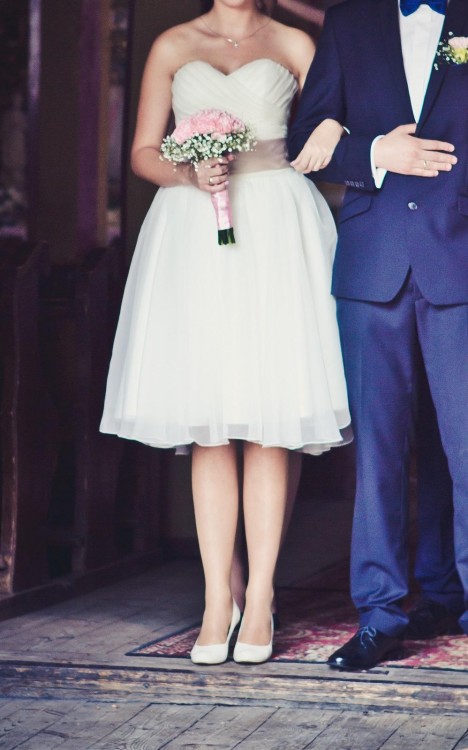 Witam, chciałabym sprzedać szczęśliwej przyszłej Pannie Młodej tą piękną suknię. Rozmiar około 38 ( suknia jest z tyłu sznurowana więc można ją dopasować do ciut innych rozmiarów).