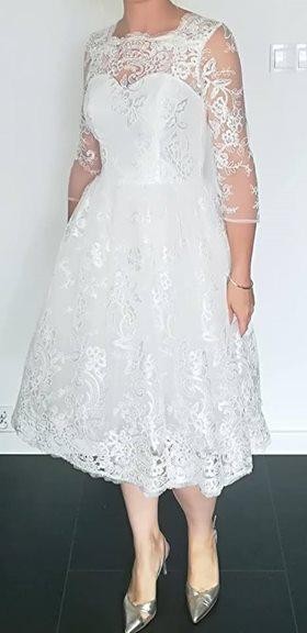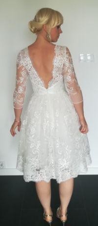 Sprzedam koronkową sukienkę w kolorze ivory od ChiChi London w stanie idealnym. Sukienka z wycięciem na plecach zapinana na zamek błyskawiczny. Spódnicę tworzy wielowarstwowa halka. Rozmiar 34-36. Wyprana w profesjonalnej pralni czeka na nową właścicielkę :)