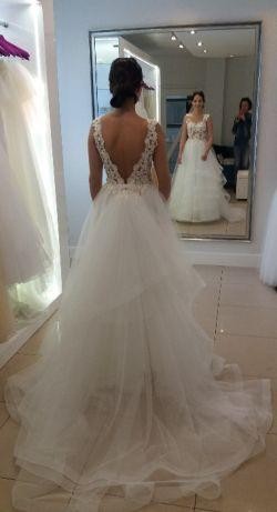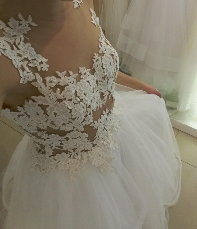 Lekka i niesamowicie wygodna suknia wykonana z portugalskiej koronki i wysokiej jakości tiulu. Dodatkowo dopinany tren i welon.