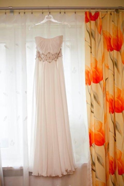 Przy krawędzi trenu zauważyłam delikatne uszkodzenie obcasem, jest ono do naprawienia przy dopasowywaniu sukni. Stad tez obniżona cena. Za suknie zapłaciłam ponad 2500zl.