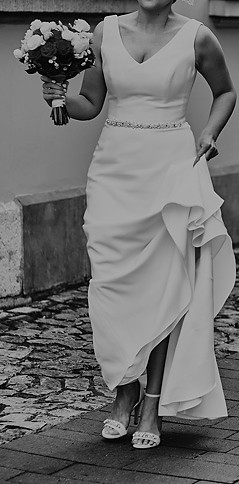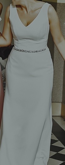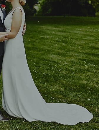 Piekna minimalistyczna suknia w rozmiarze ok 38 (mozliwosc poszerzenia oraz zwezenia bokami). Szyta na wzrost 165 + obcas 10cm (mozna regulowac).