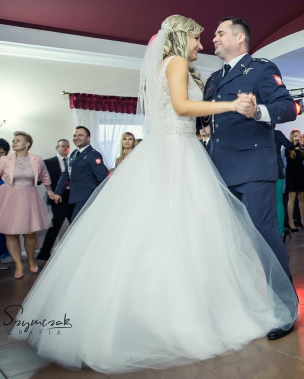 Sprzedam suknie ślubną zakupioną w marcu 2017 w Salonie Sukien Ślubnych "Najna" w Łodzi. Kolor:White / Silve. Suknia posiada piękną tiulową spódnicę i szykowny gorset z ręcznie haftowanymi cyrkoniami. Sukienka zapinana na zamek, na którym naszyte są delikatne guziczki.