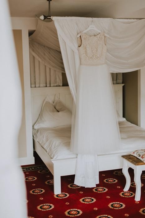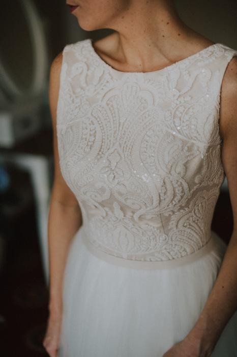 Wyjątkowa suknia, która łączy w sobie prostotę i piękne zdobienia.