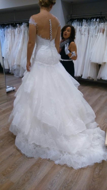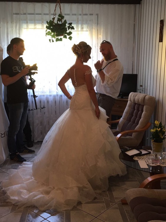 Piekna Suknia Aire Barcelona kolekcja 2017 zakupiona w Niemczech. Suknia profesionalnie skrocona na wzrost 164cm + 6.5cm obcas. Do sukni dolanczam przepiekny welon oraz kolo. Wszystko zostalo chemicznie wyczyszczone. Suknia jest dostepna od 15.10 do 27.10.