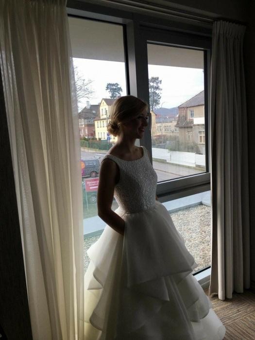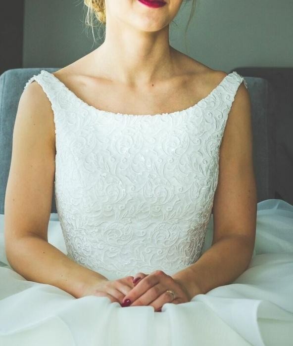 Kupiona w salonie Marietta w Gdyni, za 3900zl, z najnowszej kolekcji! Niepowtarzalna, ponieważ złożona z dwóch różnych modeli sukien, z materiałów sprowadzanych z Włoch.