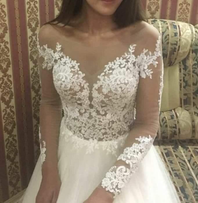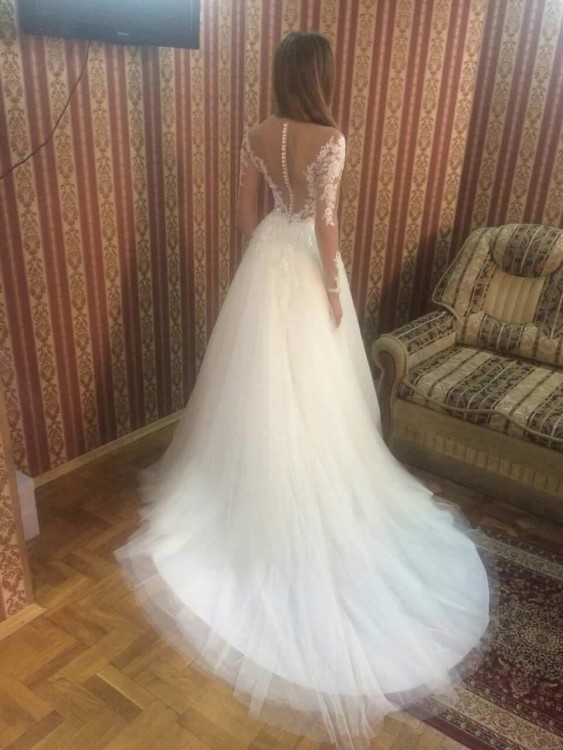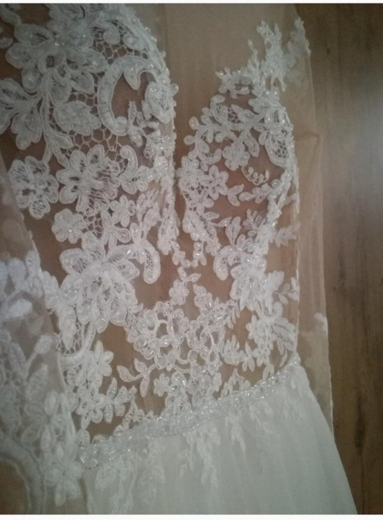 Witam, sprzedam nową ekskluzywną suknię ślubną prosto od Producenta. Produkt europejski. Nowa, nieużywana. W tej cenie koszt wysyłki kurierem pod wskazany adres (za pobraniem z możliwością sprawdzenia zawartości). Suknia uszyta wg standardowej rozmiarówki producenta! Rozmiar z tej aukcji to 34/36. Długość spódnicy można dopasować do wzrostu (na ten moment ok. 125 cm od talii). Jeśli zajdzie taka potrzeba, wymiary można delikatnie dopasować do sylwetki (rękaw,talia, biust) bez problemu zwęzić po szwie czy skrócić z długości - kosmetyczne poprawki u krawcowej. W biuście ma wszyte dwie cieliste miseczki. Posiada cielistą siateczkę na gorsecie (efekt tatuażu), zdobiona koronkową aplikacją. W talii posiada pas z kamyczków i innych świecidełek. Z tyłu jest zapinana na zamek(dół )+ guziki (gorset). Posiada dłuższy tren, jest podpinany na guzik. Może być bez trenu.Bardzo lekka. Jest przepiękna, taka nietuzinkowa - robi wrażenie ;-) Polecam