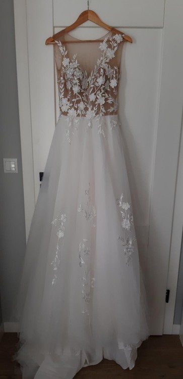 Sprzedam nową ekskluzywną suknię ślubną. Produkt europejski! Aktualna cena sukni w salonie ok 4700 zł. Nowa nigdy nie założona. Suknia uszyta wg standardowej rozmiarówki producenta! Rozmiar z tej aukcji to 36. Kolor ivory. Na wzrost ok 185 cm, można skrócić. Biust ok 84-88 cm, talia 68-72 cm. Jeśli zajdzie taka potrzeba, wymiary można delikatnie dopasować do sylwetki (długość, talia, biust) bez problemu zwęzić po szwie czy skrócić z długości - kosmetyczne poprawki u krawcowej. W biuście ma wszyte dwie cieliste miseczki. Gorset posiada cielistą siateczkę, tzw.efekt tatuażu. Zdobiona koronkową kwiecistą aplikacją. Bardzo piękne i oryginalne wycięcie na plecach. Posiada dłuższy tren, może być podpinany. Może być bez trenu. Bardzo lekka. Jest przepiękna, taka nietuzinkowa - robi wrażenie ;-) Lokalizacja Głogów - 100 km od Poznania i Wrocławia, zapraszam na przymiarkę! Możliwa wysyłka za pobraniem z możliwością sprawdzenia paczki.