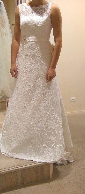 Nowa suknia ślubna oryginalna, bez żadnych przeróbek krawieckich,włoska koronka, podpinany tren, kolor krem rozmiar z metki 42 ale wypada mniejsza, cena salonowa 3200 tys.zł sprzedaję za 2000 tys.zł dodatkowo dorzucam gratis welon i ozdobę do włosów.Suknia rewelacyjnie podkreśla figurę i bardzo dobrze się dopasowuje, gorąco polecam.