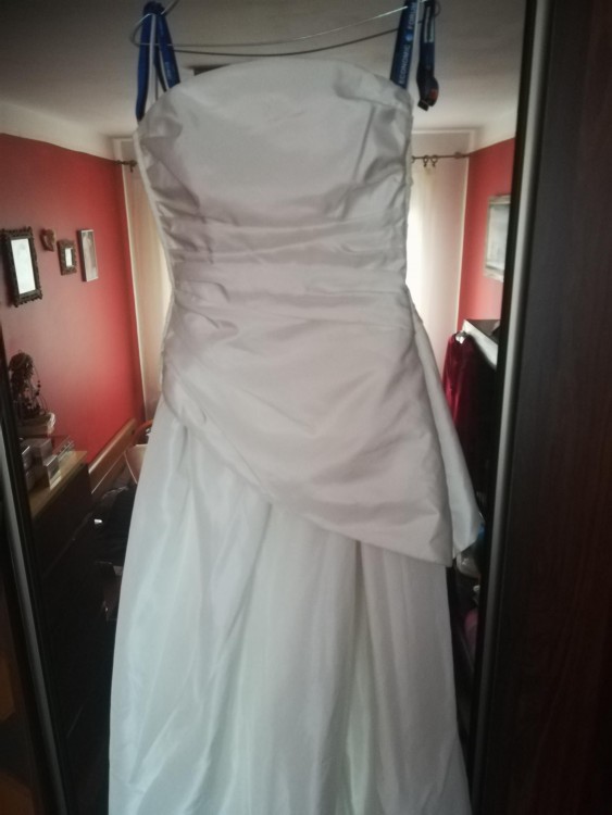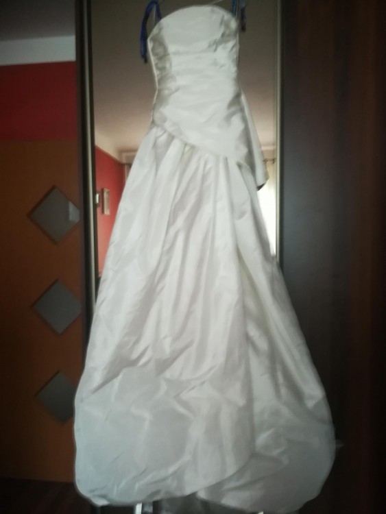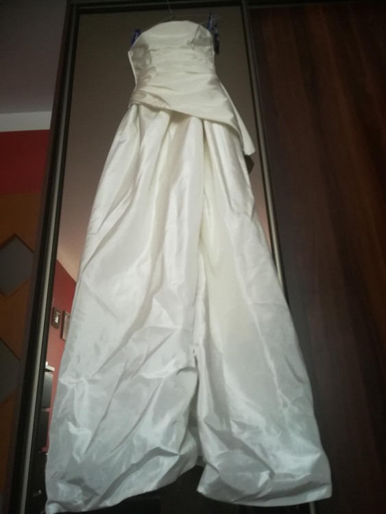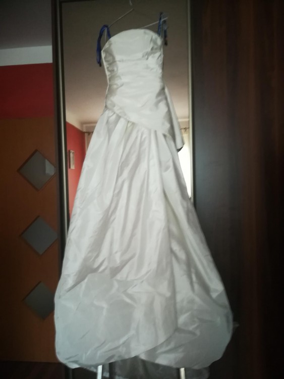 Piekna, nowa, zjawiskowa suknia z Francji. Gorset plus spodnica niewielkim podpinanym trenem kolor ecru, nie uzywana. Polecam, warra grzechu i obejrzenia. Zapraszam