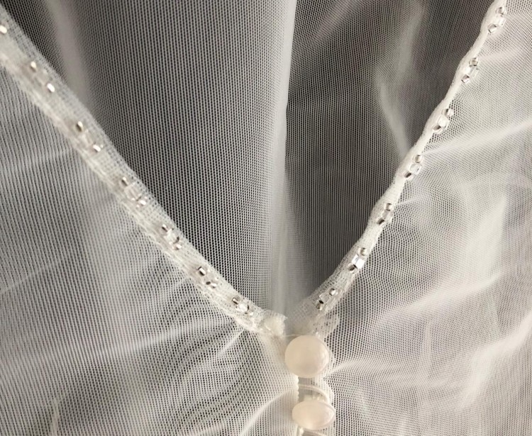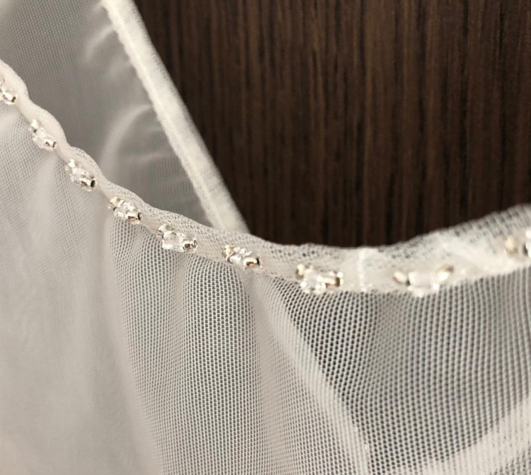 Na górze wykończenie obszyte ozdobnymi kryształkami.