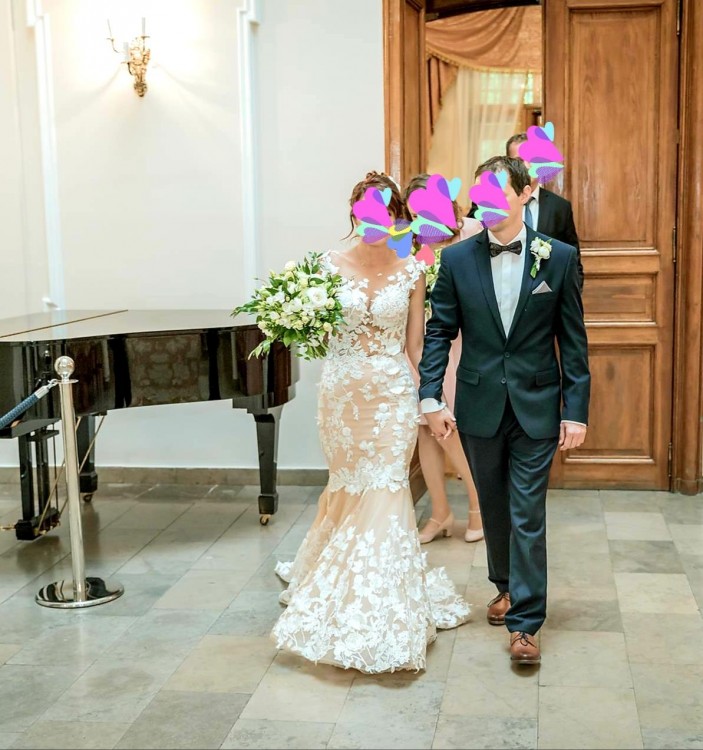 Mam do sprzedania wyjątkową suknię ślubną obok, której nie można przejść obojętnie. Oryginalny fason rybki, który podkreśla atuty kobiecego ciała sprawia, że poczujesz się zjawiskowo. Szukając sukni ślubnej na ten wyjątkowy dzień byłam pewna, że nie będzie to powszechna „księżniczka” lub prosta kreacja w stylu boho. Kolor też odegrał znaczącą rolę, podszewka w kolorze szampańskim a na nią naniesiona siateczka z białymi aplikacjami robią ogromne wrażenie. W sukni czułam się wyjątkowo kobieco. A komplementy od gości utwierdzały mnie w przekonaniu, że to była dobra decyzja. Ale teraz konkrety……
